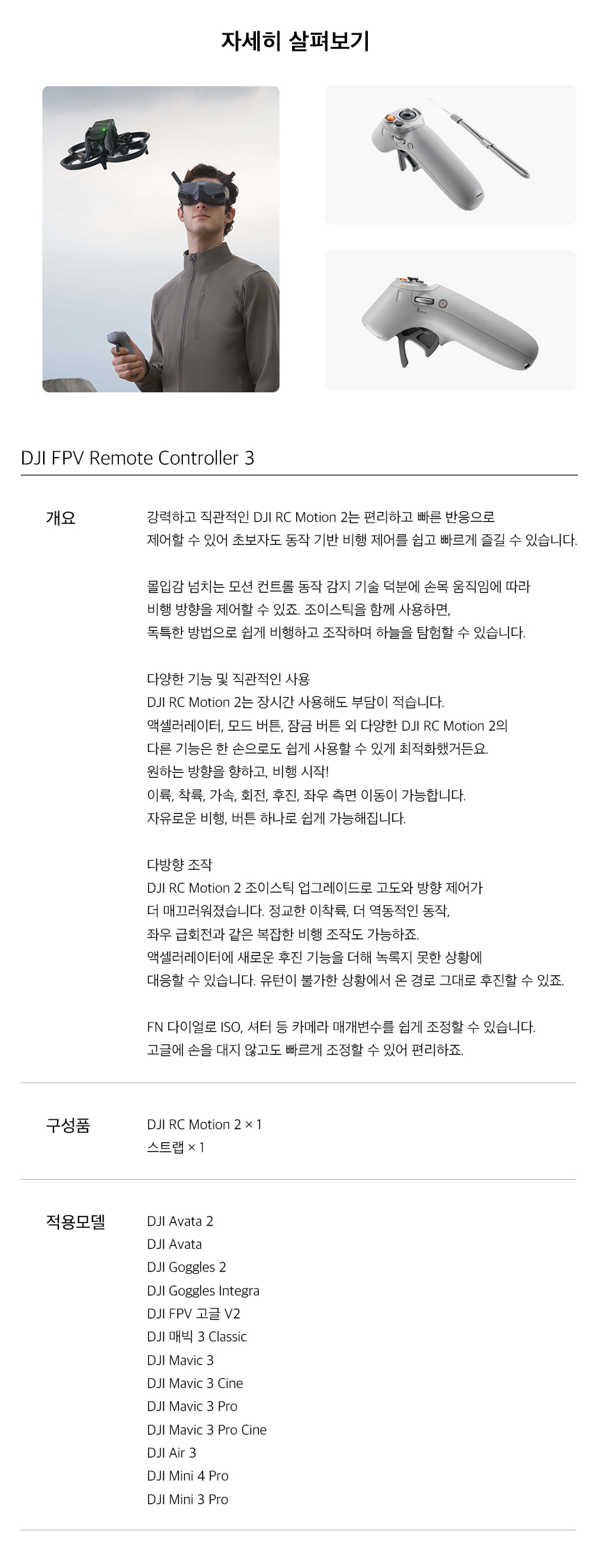 | KC 안전 인증 | [방송통신기자재] 적합인증 대상 품목으로 아래의 국가 통합인증 필함.인증번호 : R-C-dji-RM22022인증일자 : 2023-01-05(해당 인증 검사 정보는 판매자가 직접 등록한 것으로 등록 정보에 대한 책임은 판매자에게 있습니다.) |